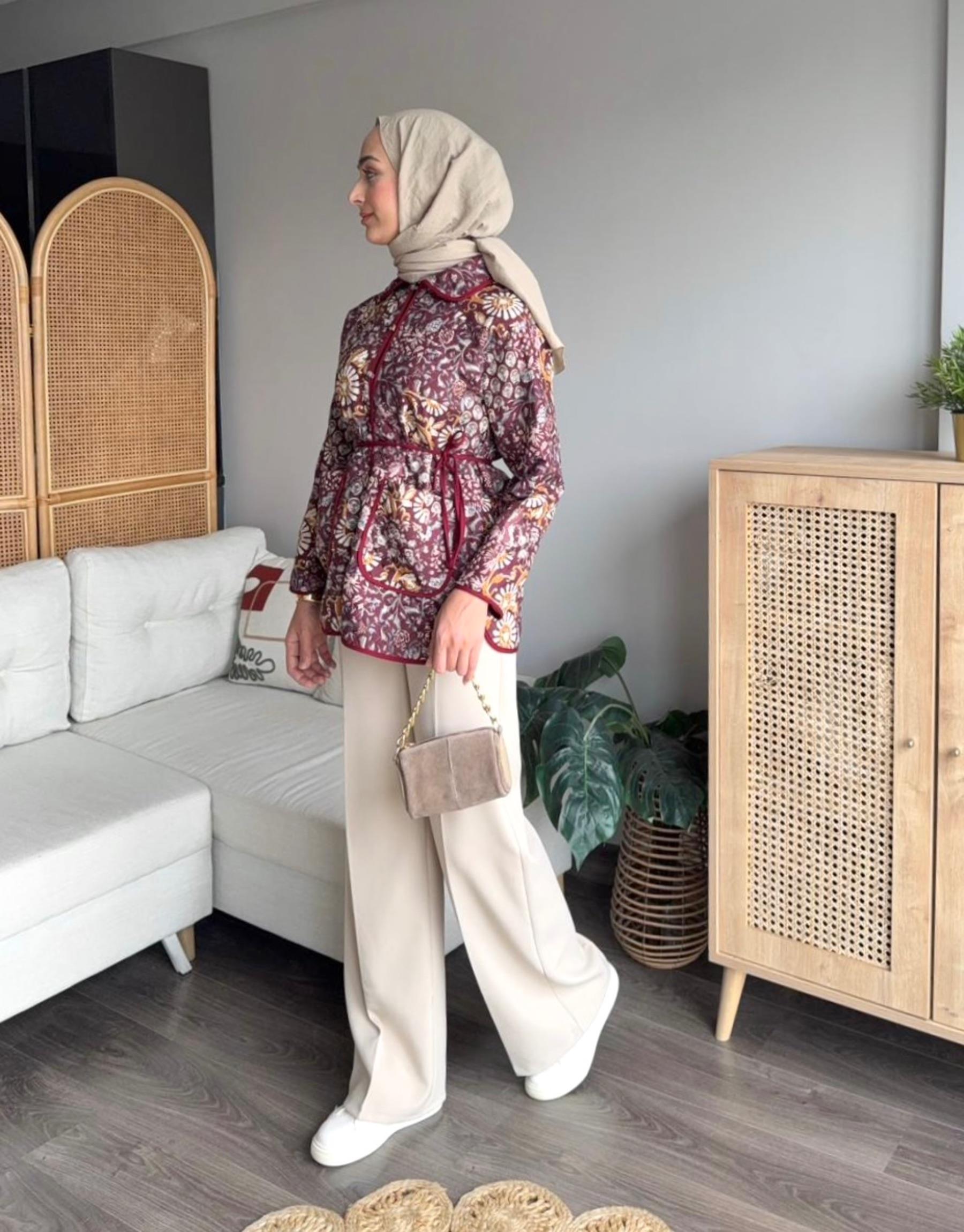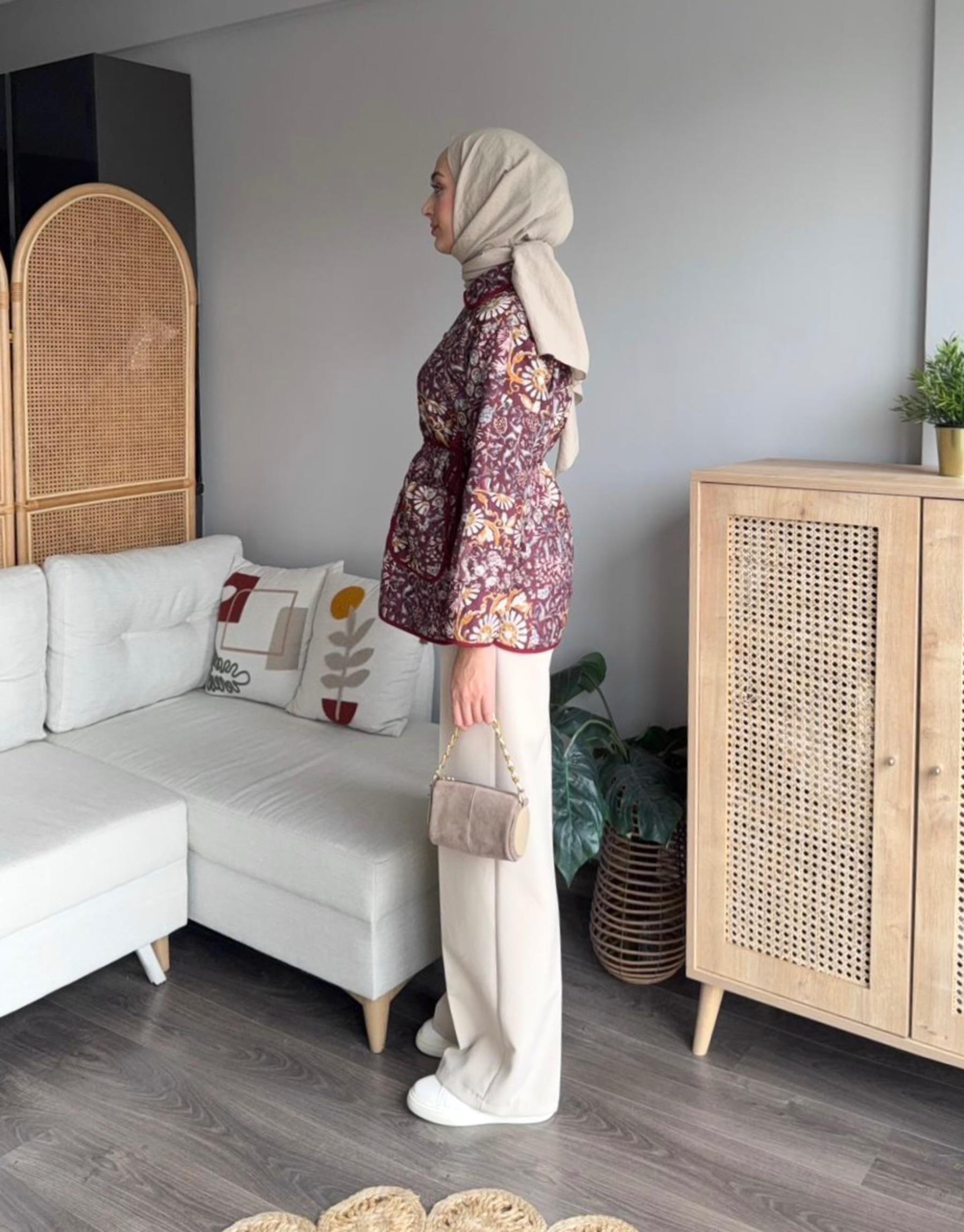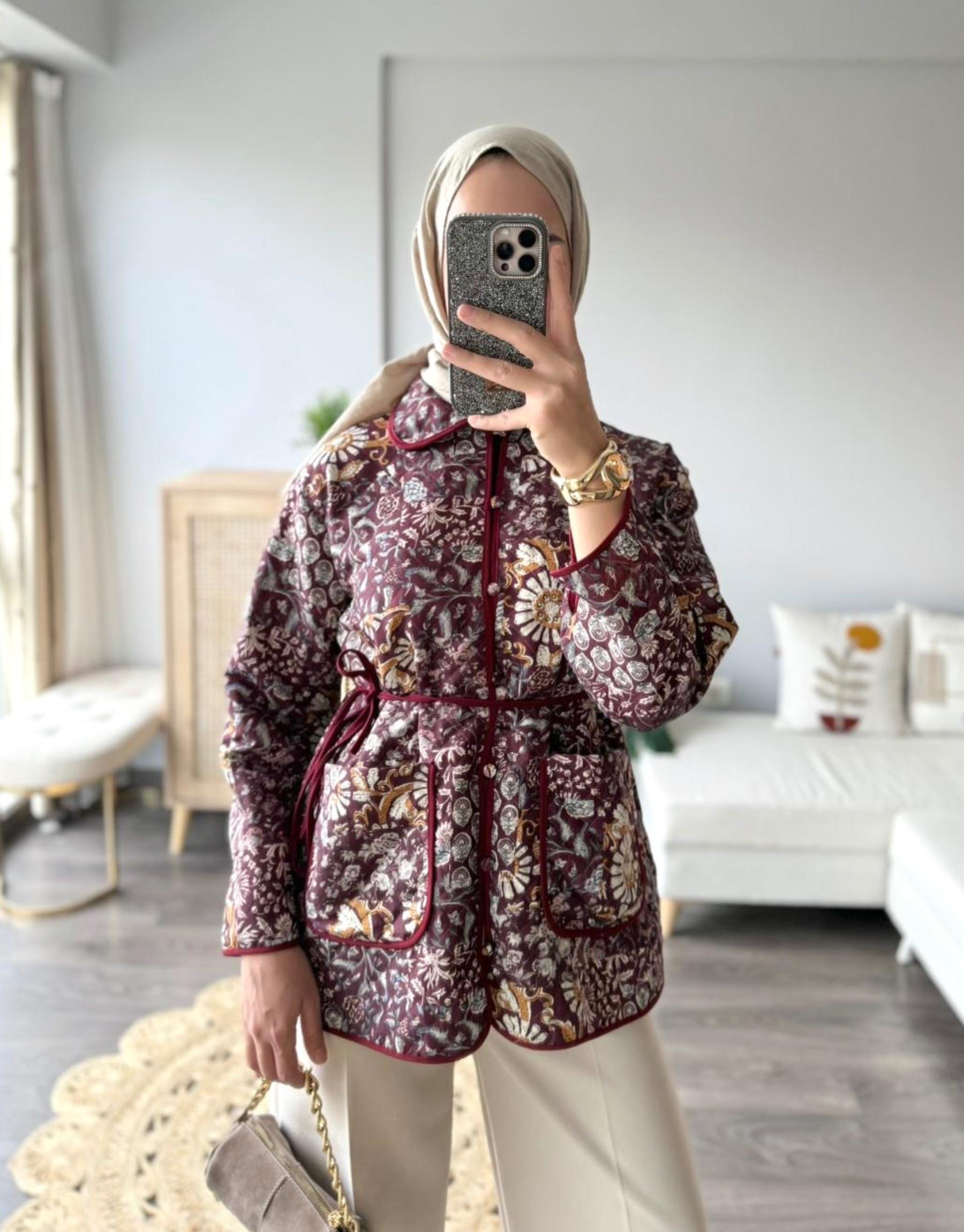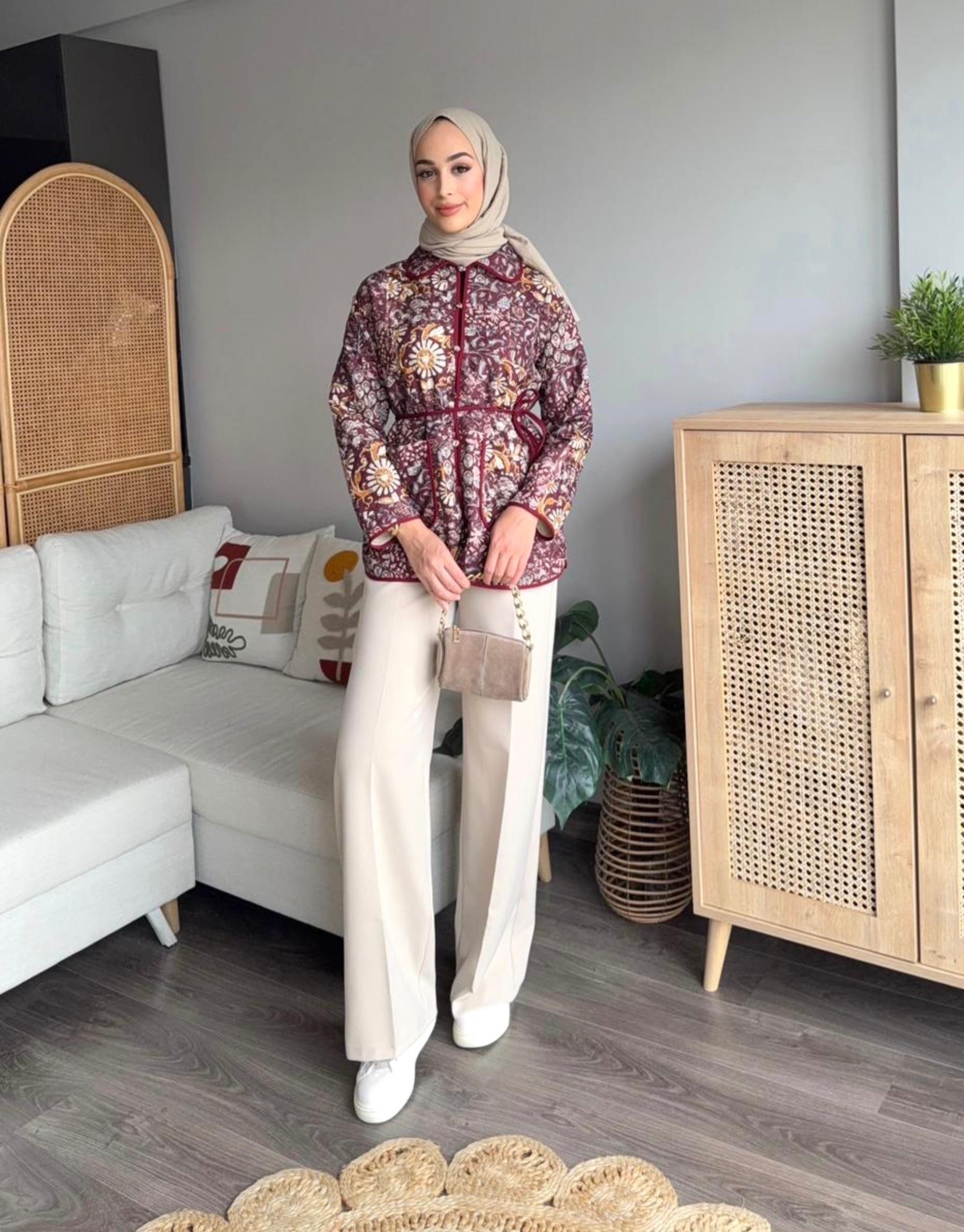 TB Desenli Kapitone Ceket | Elifsmoda