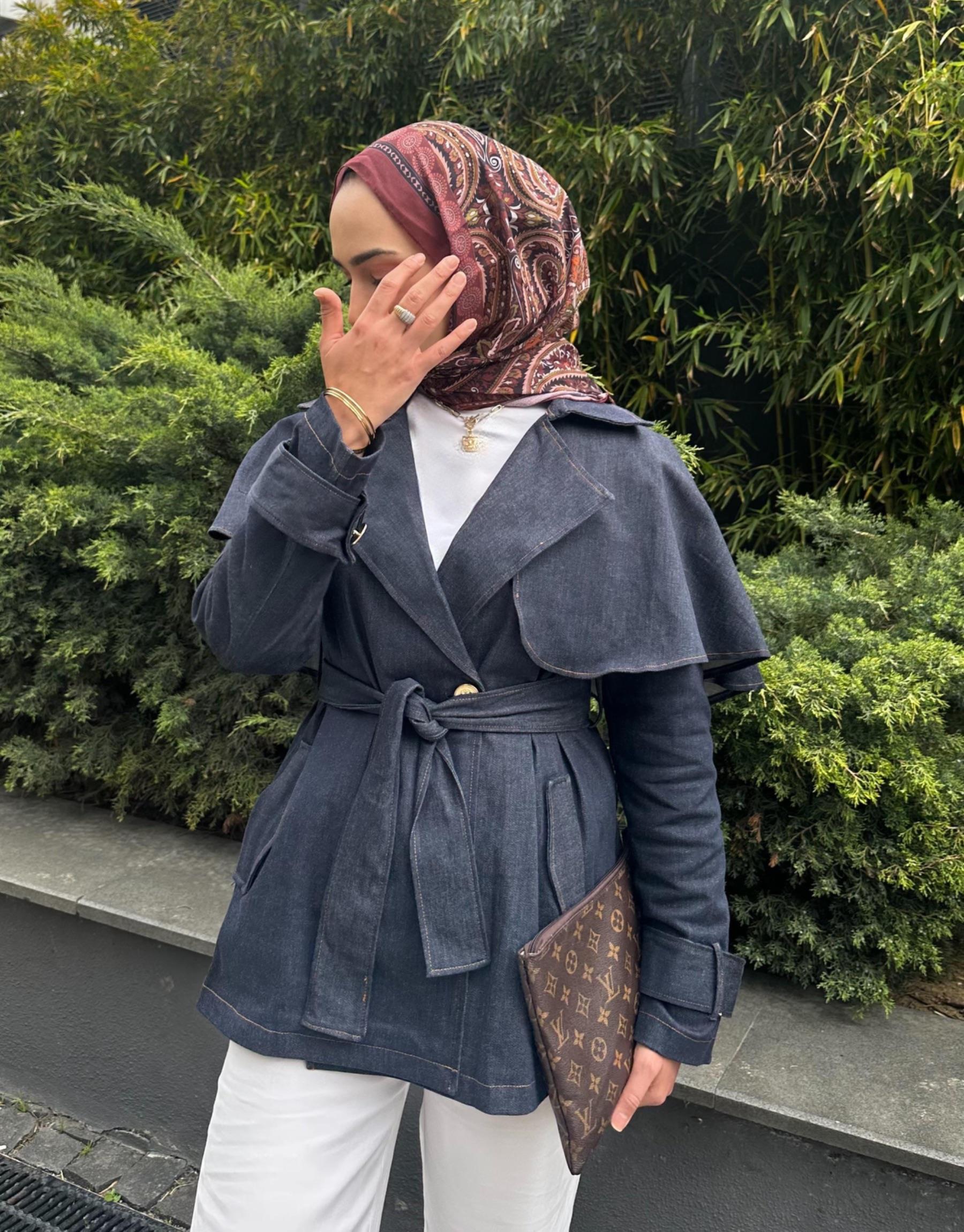Pelerinli Jean Trençkot | Elifsmoda